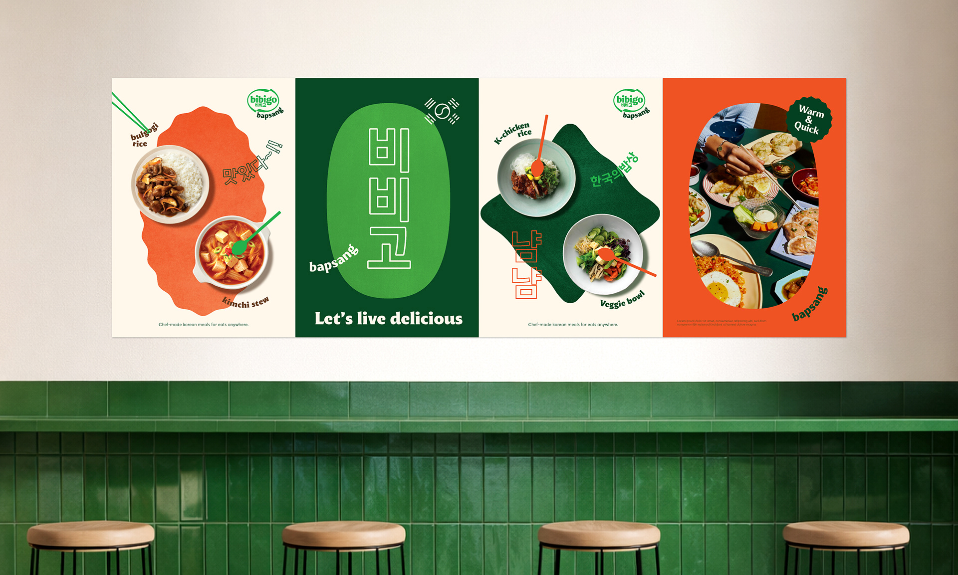 We had the pleasure of working on the bibigo bapsang project located in Central, Hong Kong. Our team led the overall graphic design—from key visuals to menu design and packaging graphics. Inspired by the keyword “Bapsang” (a Korean dining table), we captured the joyful moments that happen around the table with a playful yet modern aesthetic.